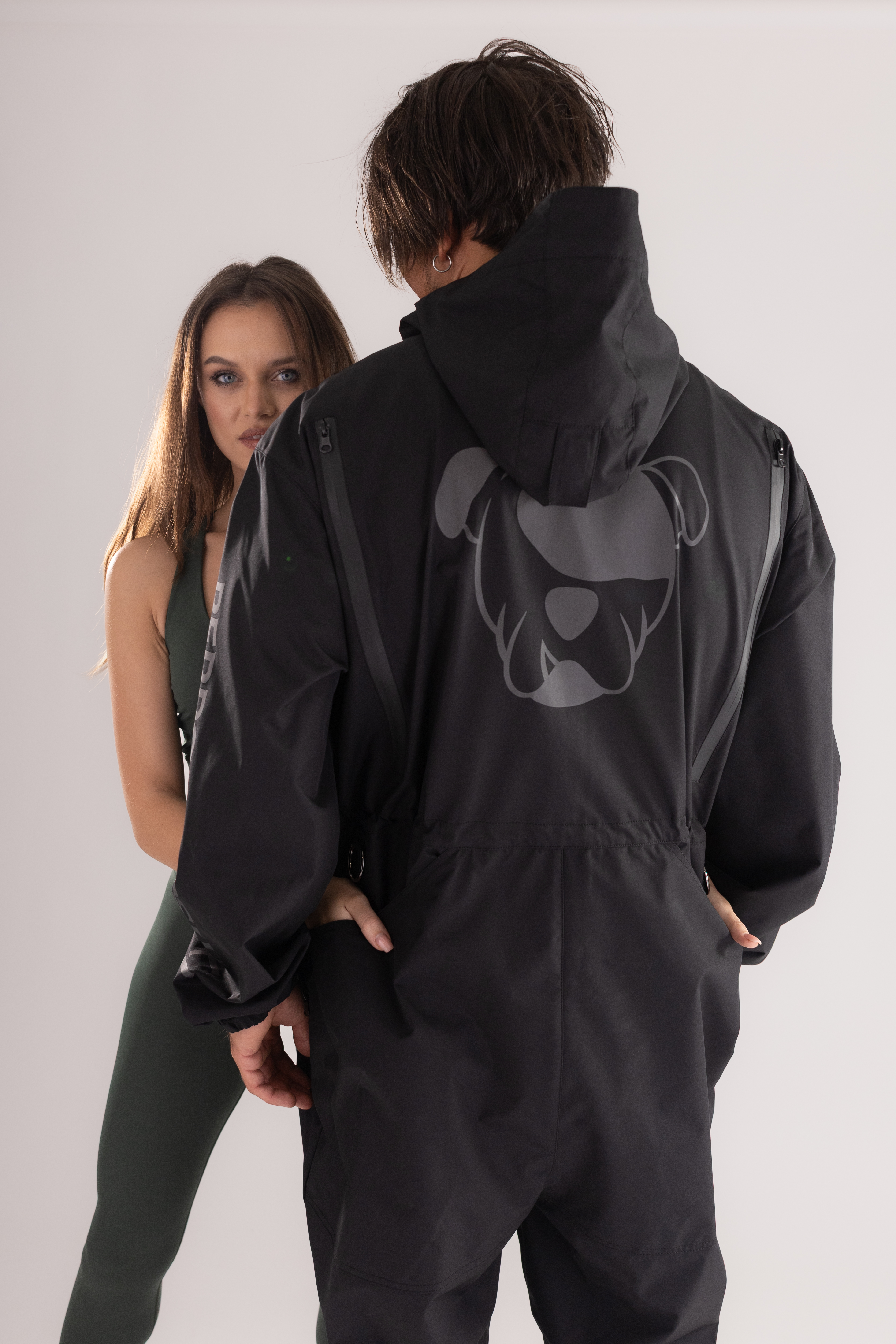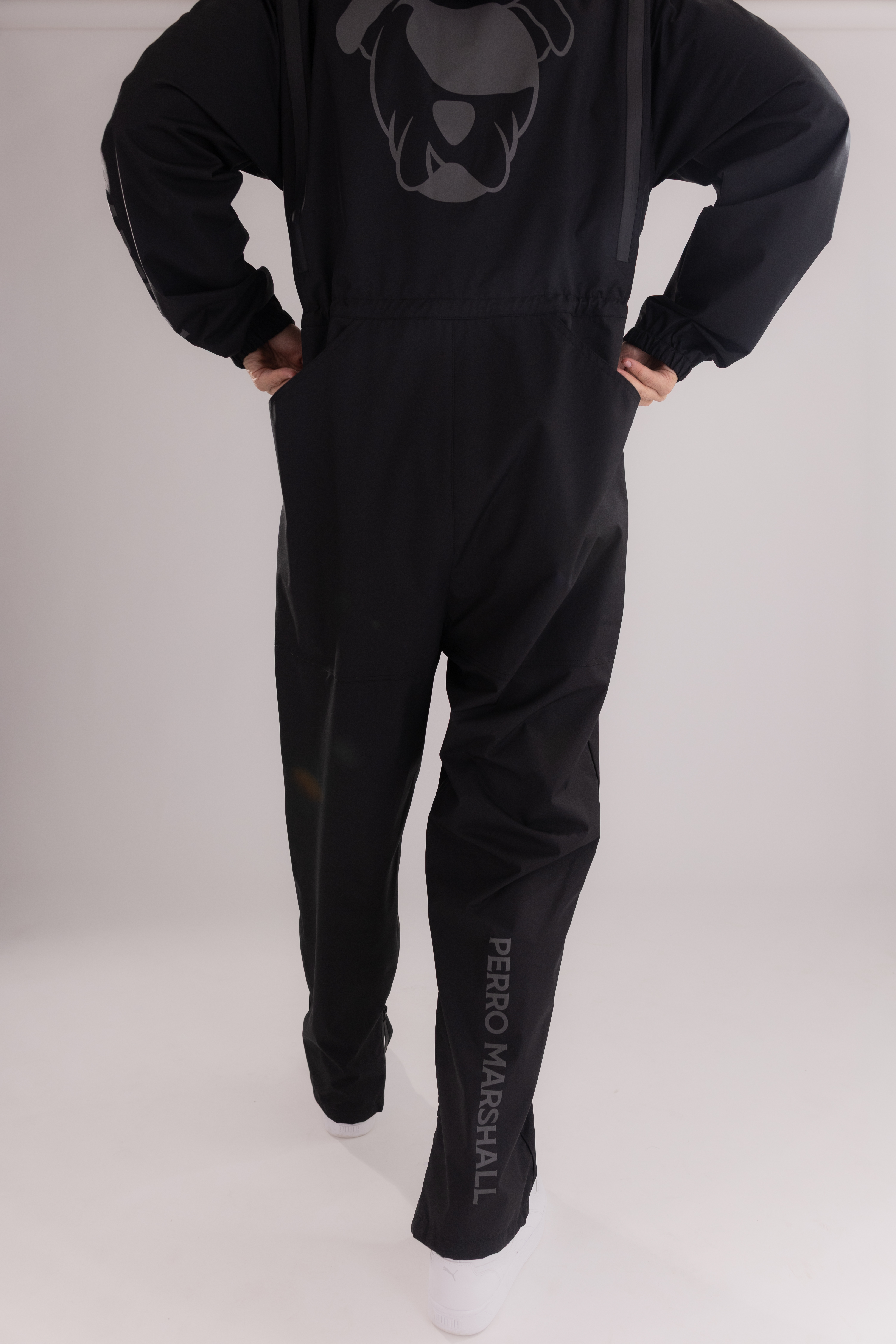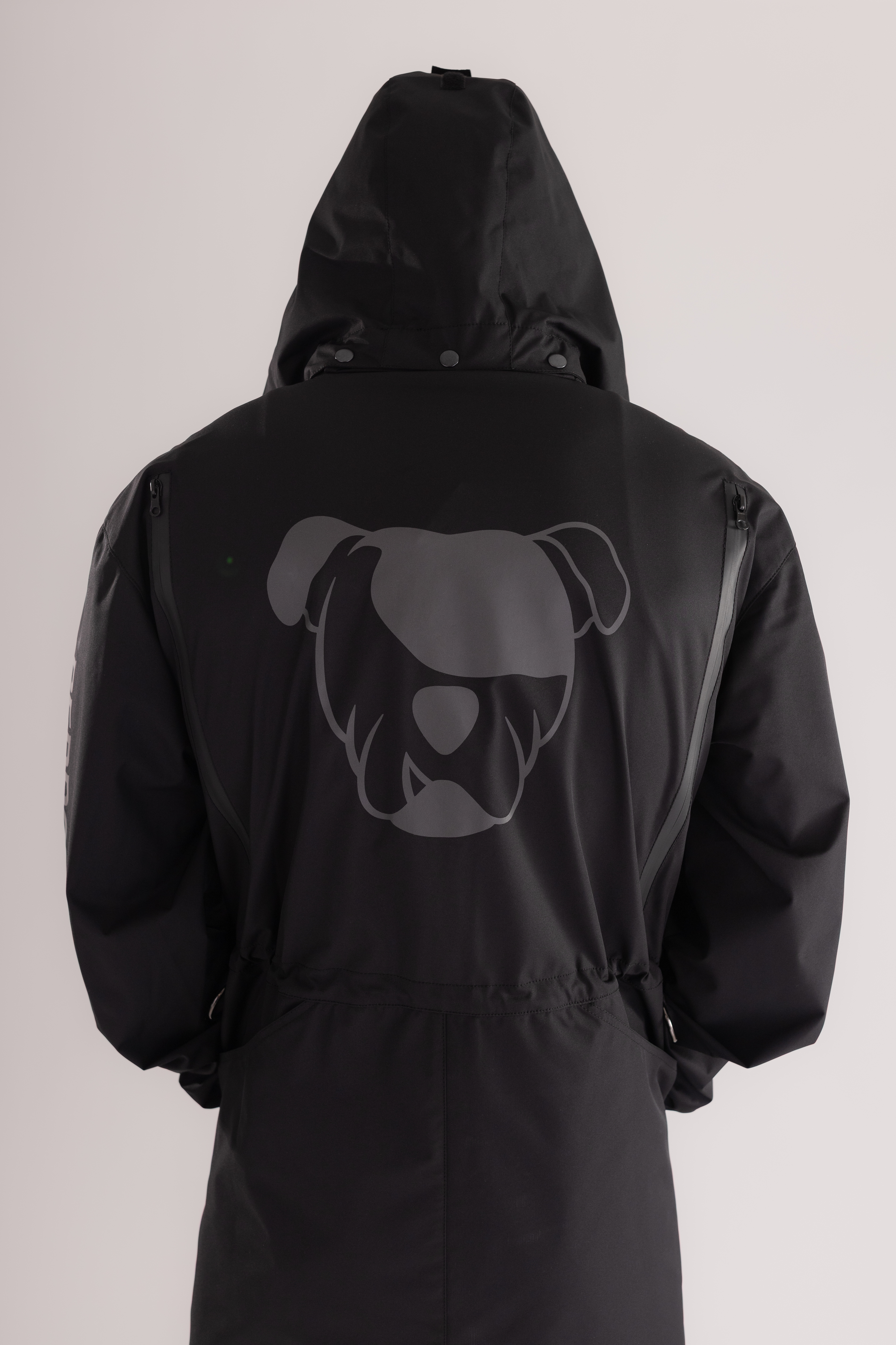 Kombinezon posiada wentylację na plecach, odblaskowe logo zwiększające widoczność po zmroku oraz dwie duże praktyczne kieszenie z tyłu na psie zabawki. Z przodu znajdują się dwie kieszenie zapinane na zamek, które pozwalają bezpiecznie przechowywać niezbędne akcesoria.