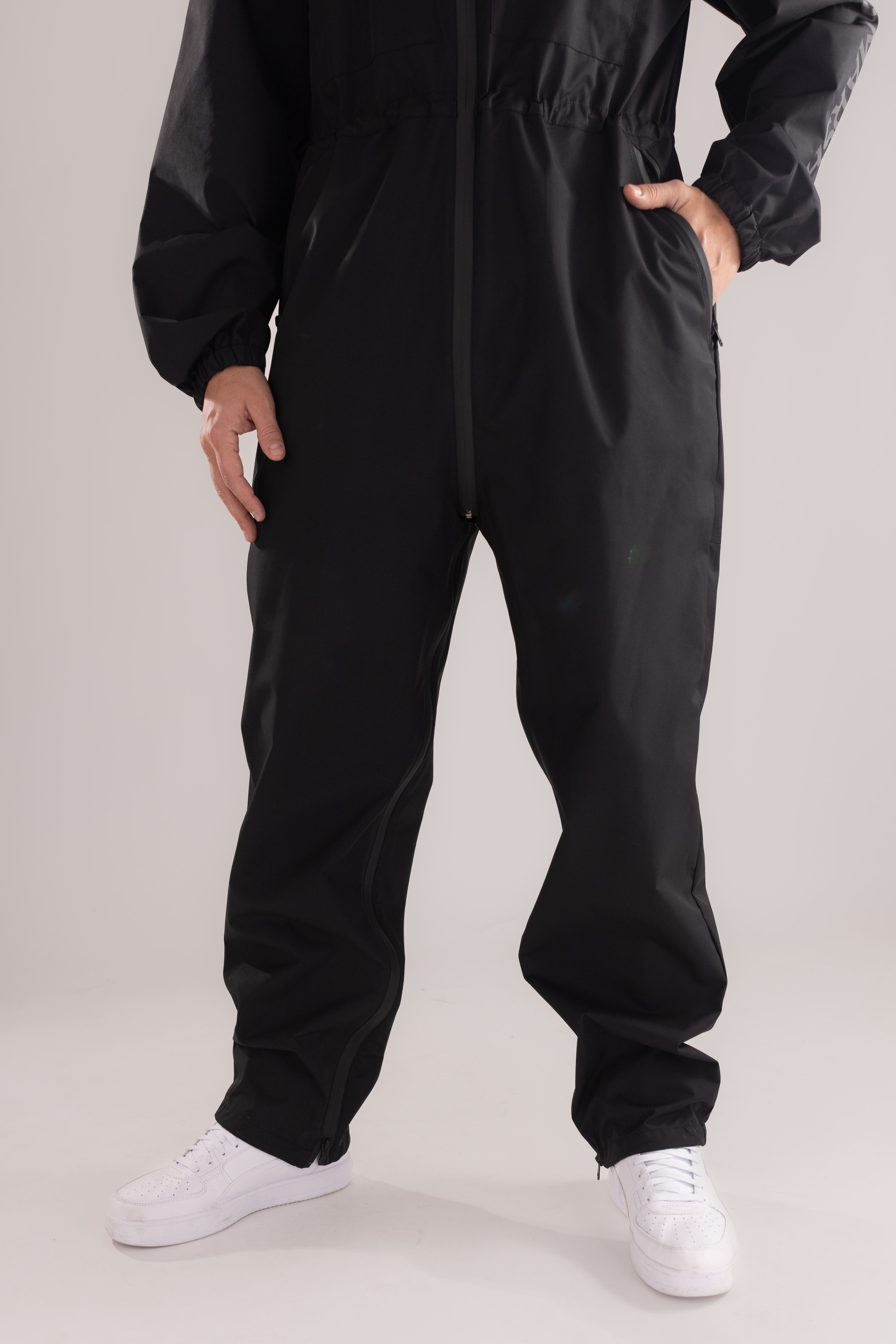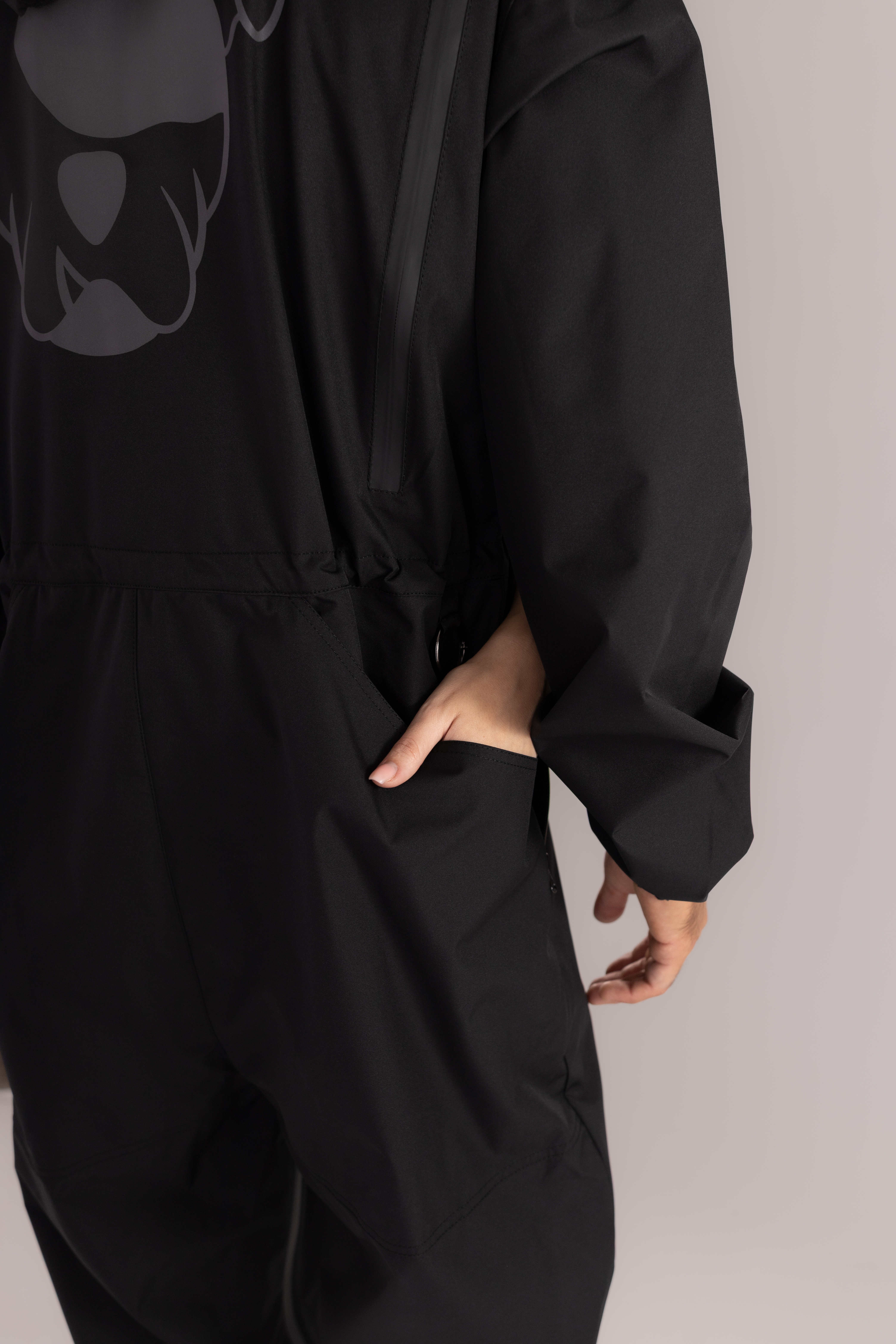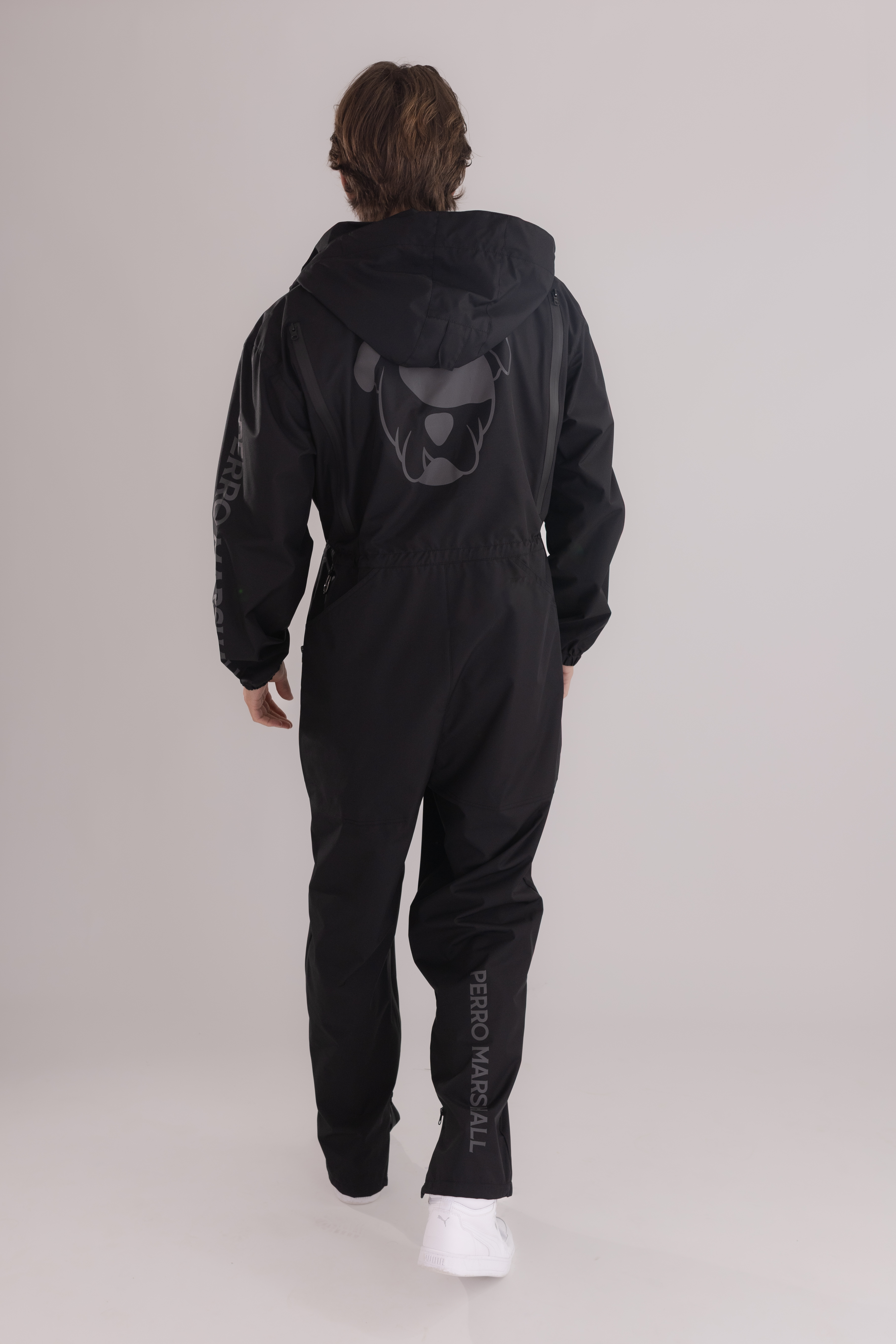 Kombinezon posiada wentylację na plecach, odblaskowe logo zwiększające widoczność po zmroku oraz dwie duże praktyczne kieszenie z tyłu na psie zabawki. Z przodu znajdują się dwie kieszenie zapinane na zamek, które pozwalają bezpiecznie przechowywać niezbędne akcesoria.