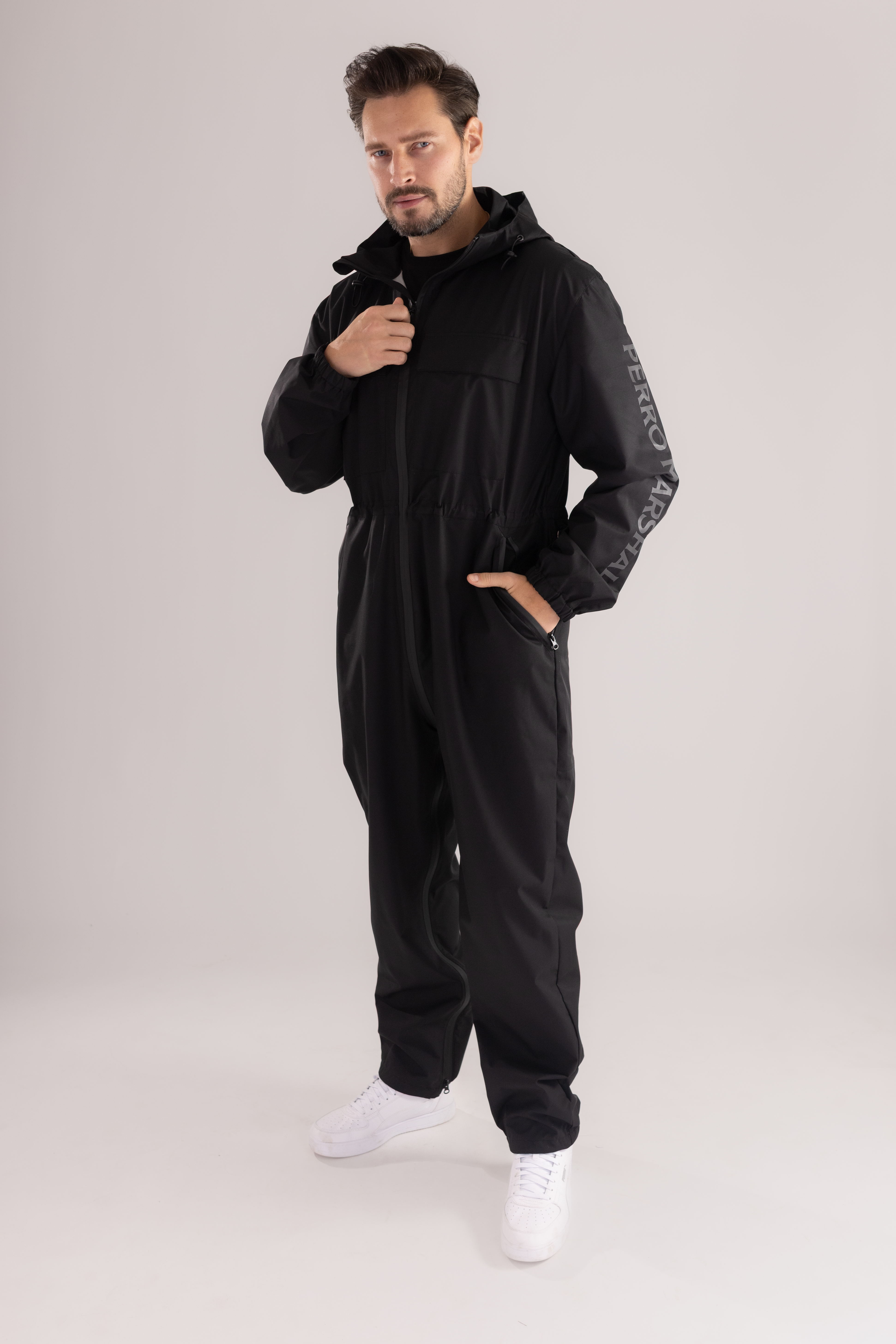 Kombinezon treningowy męski marki Perro Marshall to produkt premium zaprojektowany z myślą o miłośnikach aktywności na świeżym powietrzu. Idealnie sprawdzi się podczas treningów w trudnych warunkach pogodowych. Wykonany z oddychającej, wodoodpornej tkaniny z membraną, chroni przed wiatrem, deszczem, zapewniając jednocześnie pełen komfort ruchu i przewiewność.