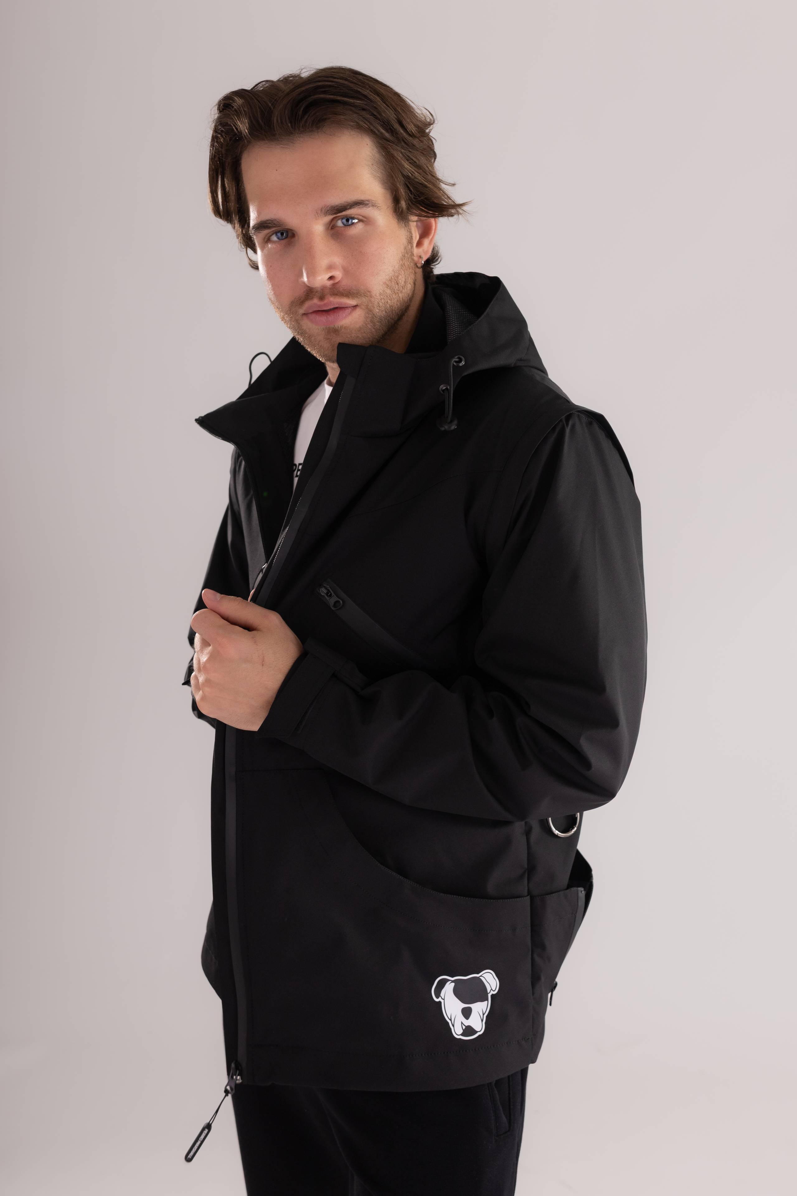 Dzięki możliwości odpięcia rękawów kurtka w kilka sekund zmienia się w praktyczną kamizelkę – idealną na cieplejsze dni. Wyposażona w wodoodporne zamki, wentylacyjny panel na plecach, regulowany kaptur i liczne kieszenie (w tym dużą kieszeń typu kangur), gwarantuje maksymalną funkcjonalność oraz wygodę użytkowania.