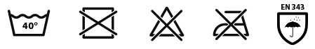 Materiał główny: poliester 100% / nie dodawać środka zmiękczającego / prać na lewej stronie / prać z podobnymi kolorami / prać z wykorzystaniem środków piorących przeznaczonych do odzieży technicznej / prać z zapiętymi zamkami / produkt może przemakać na łączeniu materiałów / stosować impregnaty przeznaczone do odzieży technicznej.